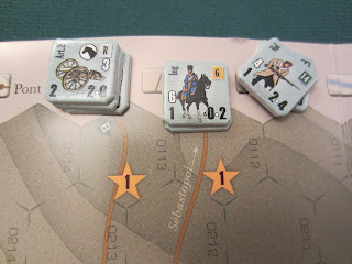 Il est à noter que l’infanterie a une portée de tir d'un hexagone et l'artillerie de 3 hexs. Il est évident que les canons vont jouer un rôle important dans la bataille et son utilisation judicieuse pourrait décider du sort de la bataille !